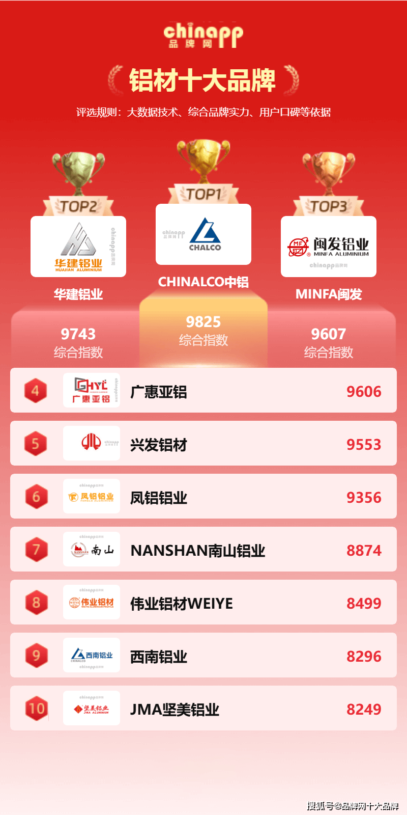 铝材做为轻量化、高强度、耐侵蚀的焦点建材,普遍使用于建建门窗幕墙、拆卸式建建、轨道交通、新能源配备、市政基建等范畴,是现代制制业取城市扶植不成或缺的根本材料。本文根据品牌网 Chinapp《2026 年铝材品牌排行榜》及企业公开材料,为大师清点中铝、华建、闽发、广惠亚铝等十大支流铝材品牌。